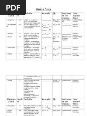 Tabel Cu Toate Marimile Fizice Studiate In Clasa A 6a Si A 7a