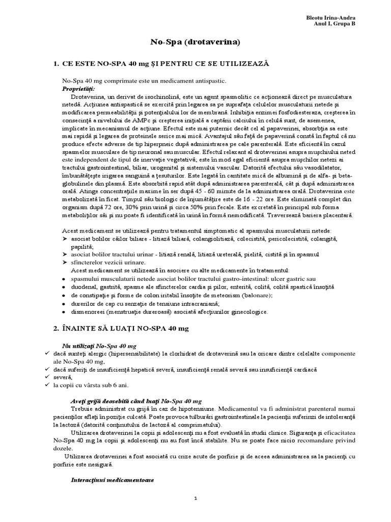 No Spa 40 Mg Comprimate Rezumatul Caracteristicilor Produsului