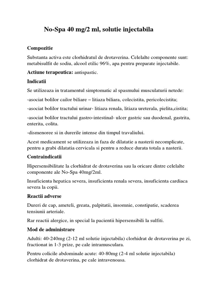 No Spa 40 Mg Comprimate Rezumatul Caracteristicilor Produsului