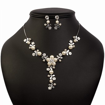 Set Cercei Colier și Brățară Placate Cu Rodiu Cu Perle Din